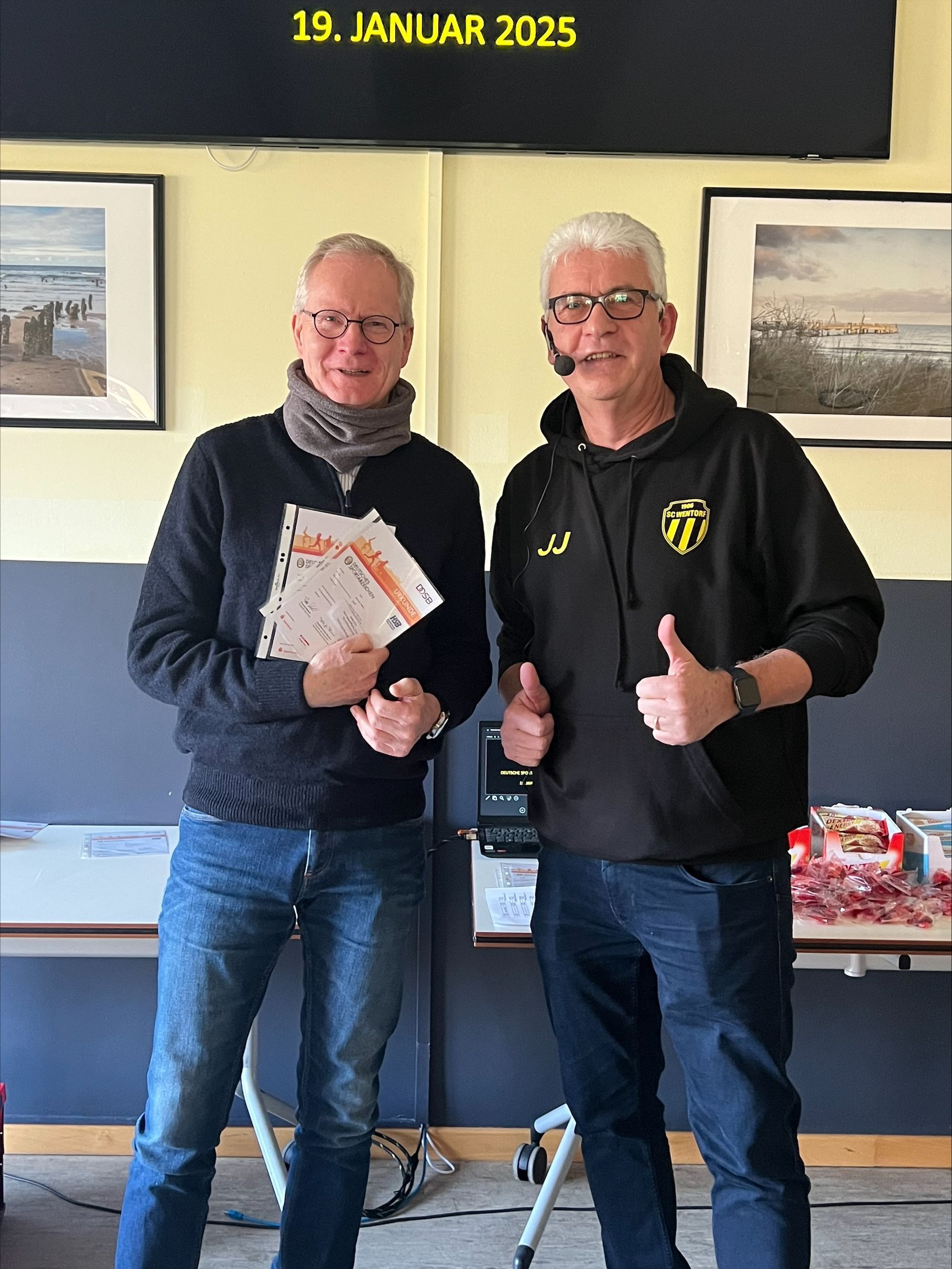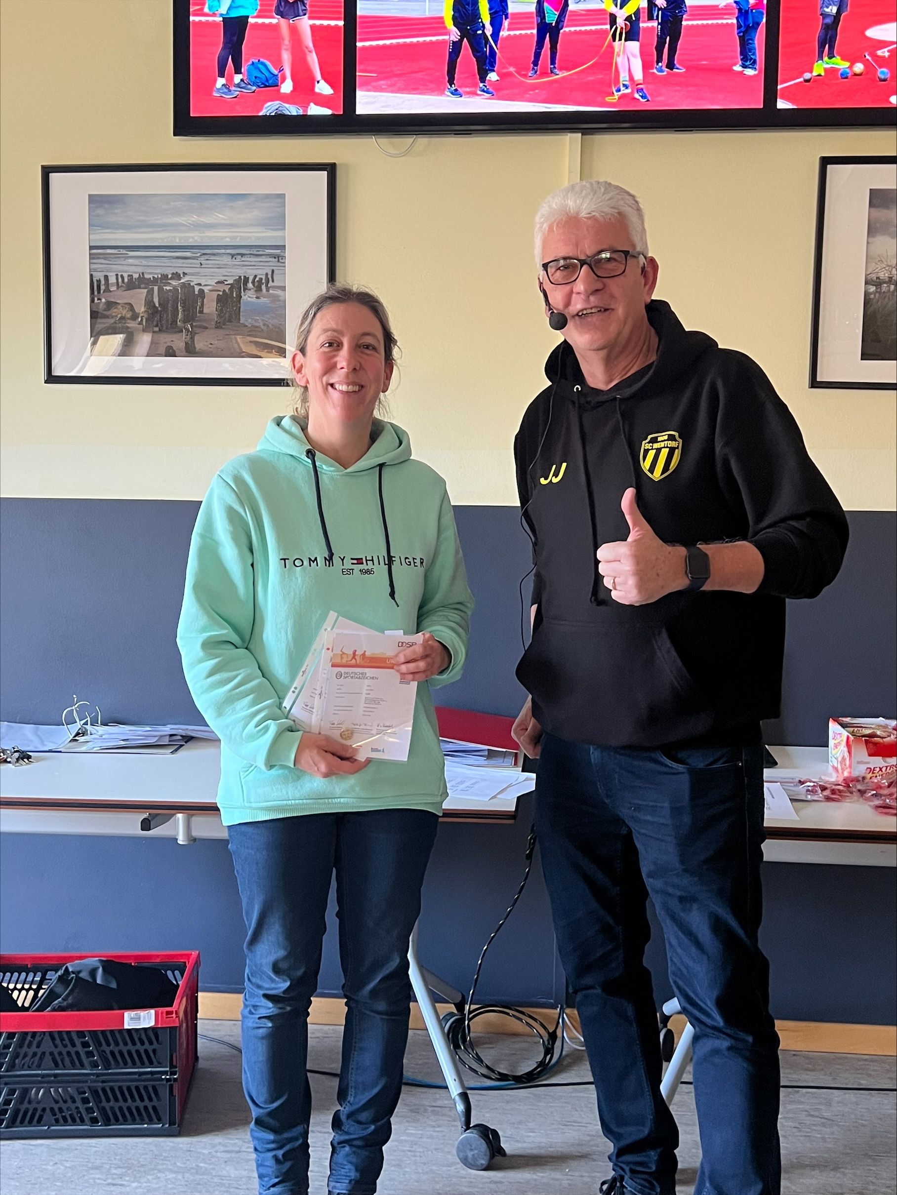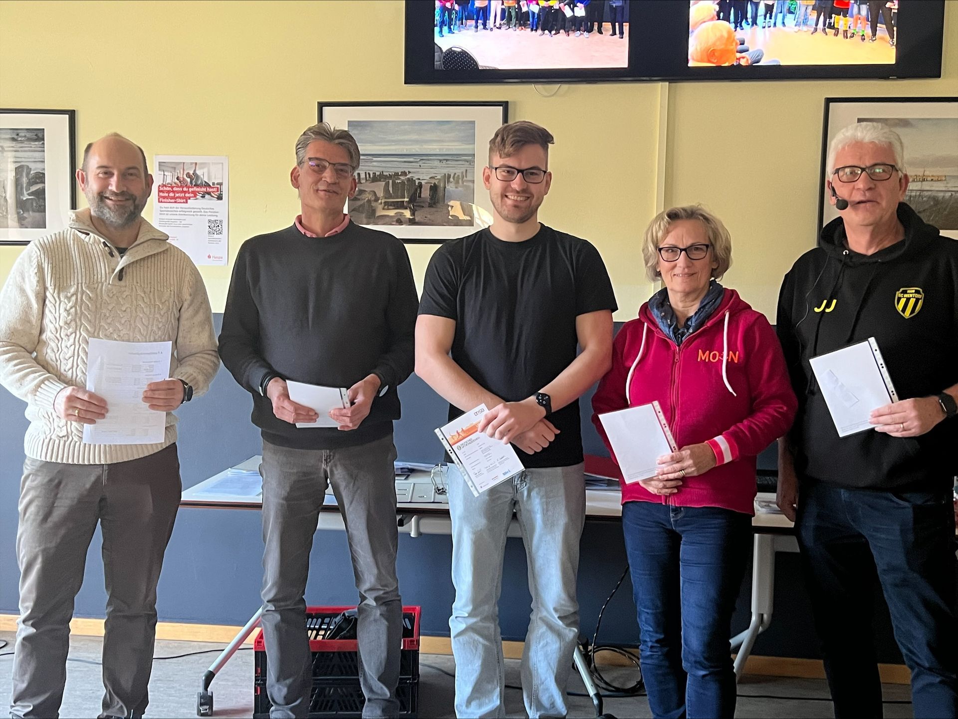 Besonders erfreulich war die Anwesenheit von Herrn Michael Christiansen, dem Filialleiter der Haspa in Wentorf, der die Teilnehmer ebenfalls herzlich willkommen hieß. Die Haspa sponserte nicht nur leckere Snacks, sondern auch ein kostenloses Sportabzeichen-T-Shirt für alle Geehrten, was die Veranstaltung zusätzlich besonders machte.