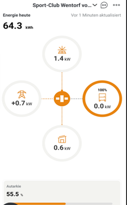 Unser Verein, der SC Wentorf, hat mit der Errichtung und Inbetriebnahme einer eigenen modernen Photovoltaik-Anlage auf dem Dach des Vereinsgebäudes einen weiteren großen Meilenstein auf seinem Weg der nachhaltigen, ressourcenschonenden Ausrichtung erzielt. Mit der Umstellung des Energiebezugs auf standortnahe regenerative PV-Erzeugung mit Speichermöglichkeit wird die Energiebilanz des Vereins deutlich verbessert.