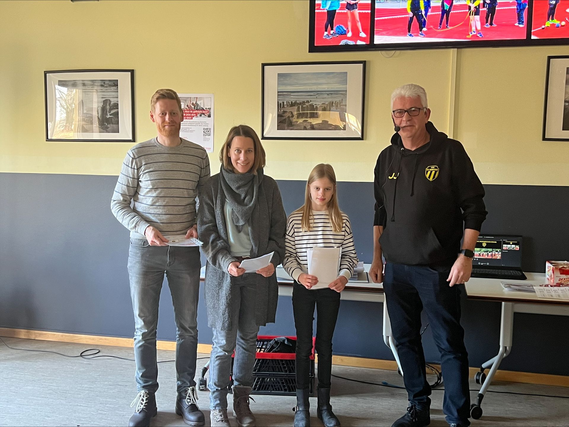 Die Sport- und Jugendwartin Peggy Rateike-Peters und der 2. Vorsitzende Helge Müller unterstützten Johannes Jung bei der Ehrung und verteilten Getränkegutscheine an die Geehrten.